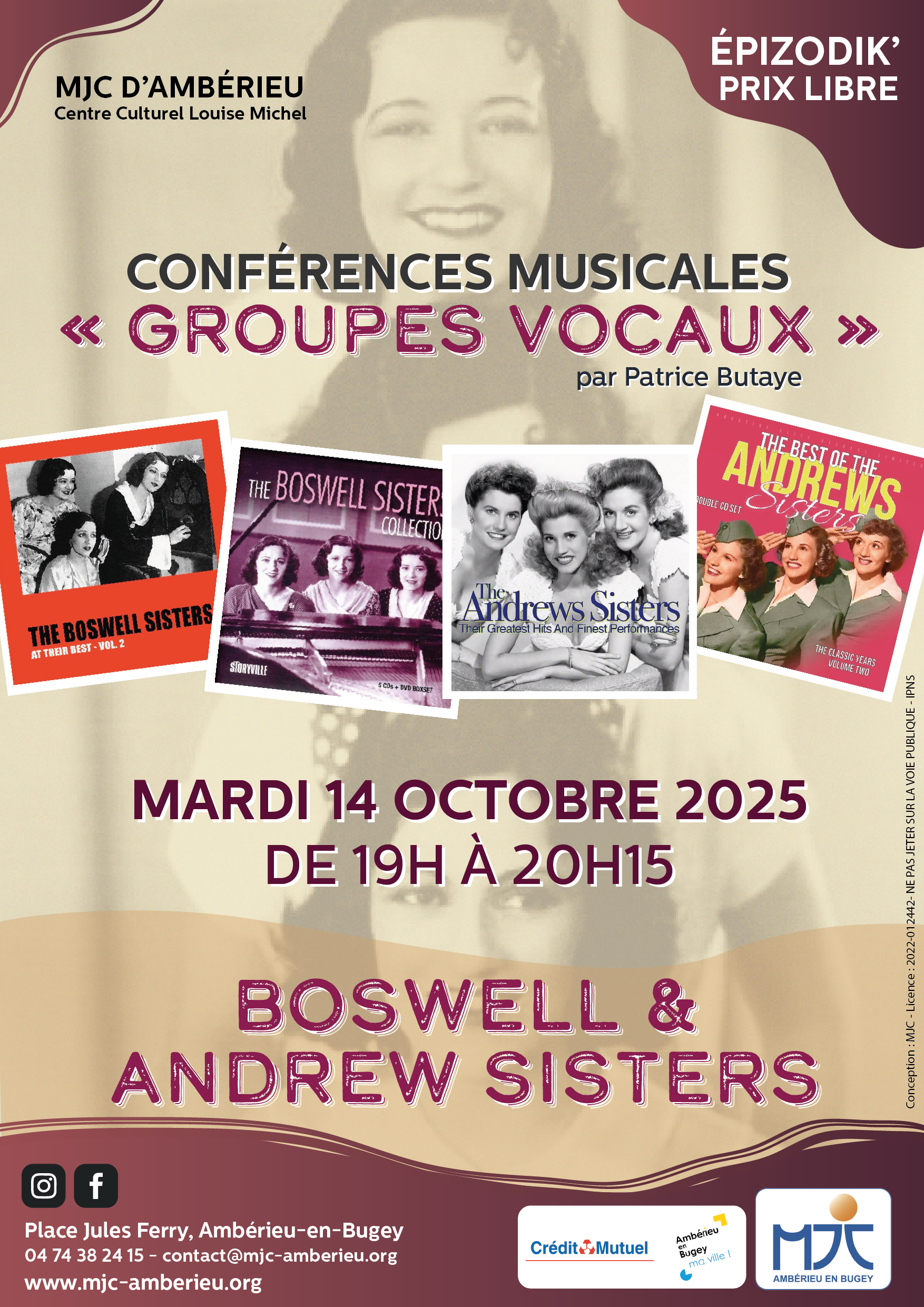 Prochains Mardis : 18 Novembre "Milles Borthers" - 16 Décembre "Lambert, Hendrix & Ross" - 20 Janvier "Les doubles Six".