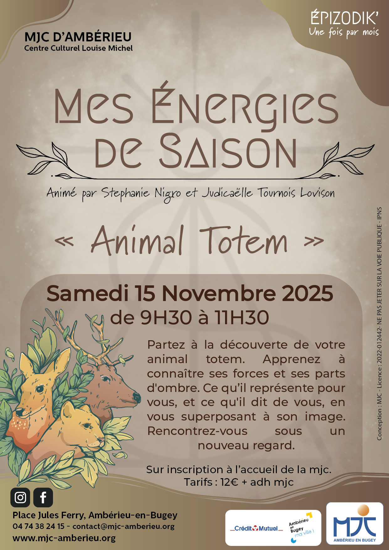 TARIF : 10€ la séance + adhésion à la MJC.