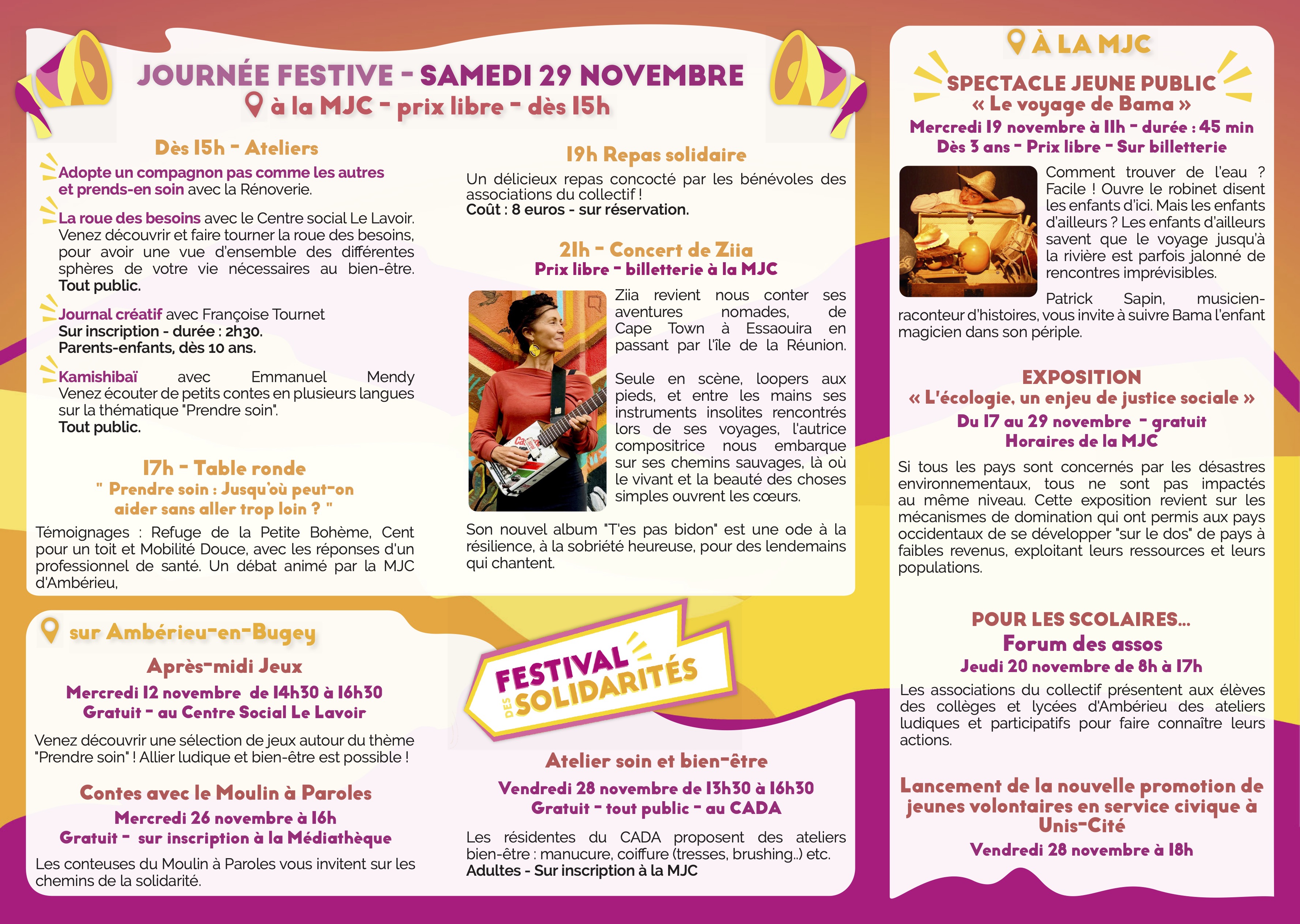 Ce thème sera exploré à travers de nombreuses animations : table ronde, ateliers, forum. Mais aussi films, théâtre, contes, concert, repas solidaire. Car le FestiSol, c’est aussi la Fête !